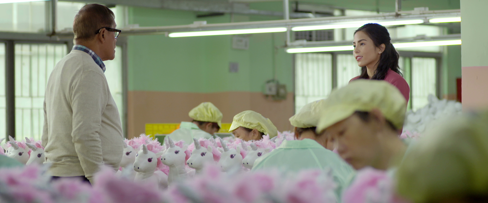 When spoiled rich girl Sasha Li (Anna Akana) finds her trust fund cut off by her father, Teddy Li (Richard Ng), she is forced to go back to China and work in his toy factory for one year before he will unfreeze her accounts. A lot of the focus early on in the film is about just what a wild, hedonistic person she is. She’s blowing two grand paying for her friends to attend her own birthday party, she’s buying expensive jewelry left and right, and most of her outerwear is made of some sort of dead animal (or at least expensive faux dead animal). Her father doesn’t have much of a different outlook, having decorated his home to look like an emperor’s palace while he gives his youngest kids (by his youngest wife to date) chardonnay with dinner. Everyone is living ridiculously large and there’s a bit of a narrowed eye thrown at consumerism but don’t worry about that because it’s not going to be present much outside of small moments.