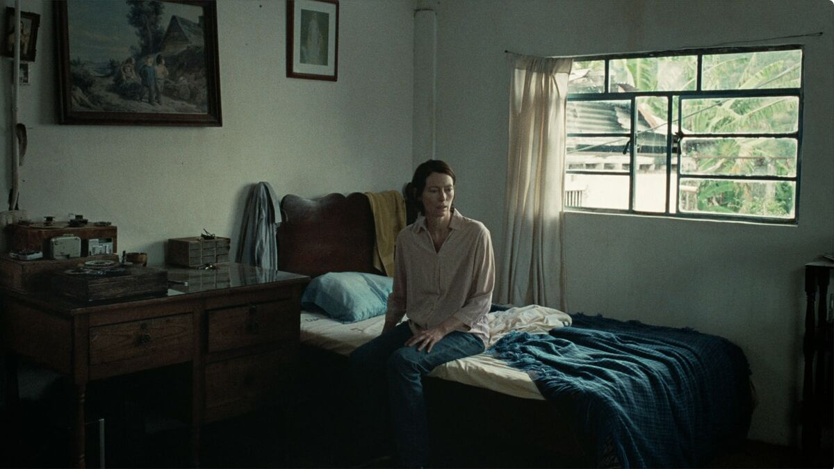 And how to describe this thing? The film opens with a woman, Jessica (Tilda Swinton), being frightened out of slumber by a loud banging noise. Sure, the noise will follow her through the film, gradually growing more comforting than frightening, but it serves as an effective jumpscare that draws us into a world of sonic understanding in a film built entirely on diegetic sound. Weerasethakul has always been a filmmaker built more on vibes and design than on plot, but with Memoria he’s apexed into something beautiful. Jessica is a Scottish ex-pat living in Columbia, working at her flower show and following this sound down the rabbit hole that will take her from Bogotá to Medellín. It’s not a thriller, but all of the pieces to make it one are there. It’s not a science fiction film, though its contemplation on audio technology and the exciting reveal of its final twenty minutes brush against it. It isn’t even a horror flick, at least not in the conventional sense, but one long and quietly unsettling scene involving car alarms will make you feel afraid deep in your bones.