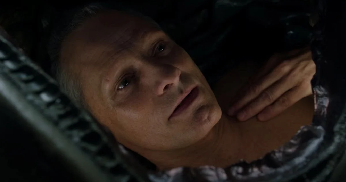 From here we jump to performance artist Saul Tenser (Viggo Mortensen) as he writhes in his OrchiBed. His partner, Caprice (Léa Seydoux), has come to wake him up so they can examine the new organ he is growing. Tenser grows organs, Caprice inserts a needle into him to tattoo them, and then they perform the surgery in public to show off his new organs to masses that are longing to feel anything. Humanity has evolved to a point where pain is a novelty, a relic of the past that they sometimes get to experience, and surgical mutilation has become a new performance art and is seen as an arousing display in a world where sex doesn’t really exist anymore. While the duo has become quite popular they have also been noticed by the latest in government oversight – the National Organ Registry. Two investigators, Wippet (Don McKellar) and Timlin (Kristen Stewart) begin to look into this new practice of organ removal, frightened that Saul’s shows could be the key to the next stage in human evolution and also just…achingly horny about it.