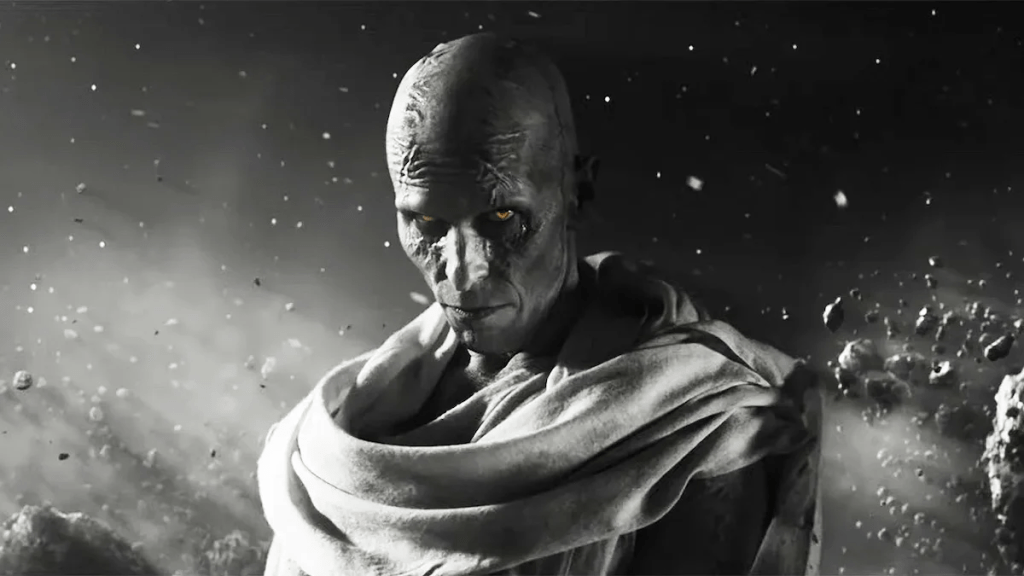 But the actor doesn’t do all of the heavy lifting. Bale is working his ass off to make something of his compelling-but-underwritten villain. He’s charming, funny, and truly horrifying in every scene. The two work well together, coming to a battle in black-and-white (with beautiful little splashes of color) that is perhaps the most stunning thing Marvel has put onscreen in years. While Thor: Love & Thunder may be a bit of a mixed bag I have to admit…it’s got style. Sometimes the film has more in common with the heady romanticism of an Aronofsky film intercut with Jonathan Glazer visuals than it does anything else in Marvel, giving me glimmers of hope that this might just lead Marvel somewhere. If Bale is the type of actor and Gorr the type of performance they’re wanting sign me up.