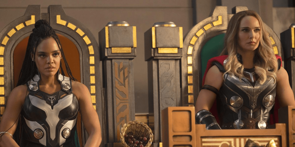 Enter Thor: Love & Thunder. The gods are in trouble as one of them ignored the cries of his final worshipper, Gorr (Christian Bale giving the MVP performance). Gorr’s daughter died in his arms, and his hatred makes him worthy of the Necrosword, which can kill gods. Gorr begins butchering his way through the pantheons of many a culture, all while Thor is cavorting around with the Guardians of the Galaxy. After parting ways he returns to New Asgard to try to save it from Gorr, only to find it well-defended by Valkyrie (Tessa Thompson) and none other than Jane Foster (Natalie Portman). The three will come together in more ways than one as they try to stop Gorr the God Butcher from reaching some wish portal that will allow him to kill all of the gods.