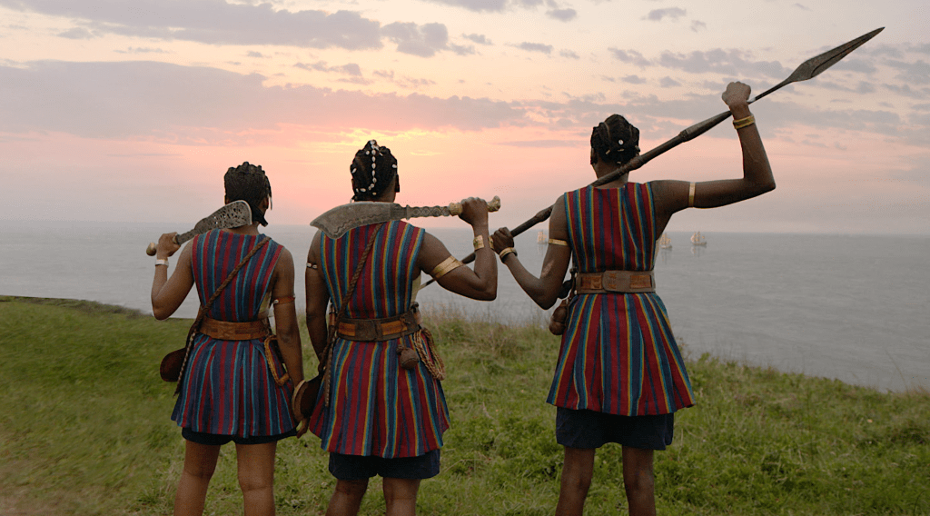 That world is set in its on-location shoot, utilizing the landscape of West Africa to ground the story in a real place. Production designer Akin McKenzie has put in a triumphant effort to create a Dahomey that feels real, lived-in, and yet grandiose on the big screen. That goes ditto for the costume and makeup departments, led by Gersha Phillips and Louisa V. Anthony. Much was made of how accurate to the time this film would be, and while I don’t have the scholarly knowledge to really determine how well they nailed it I can confirm that it looks absolutely incredible in the film.