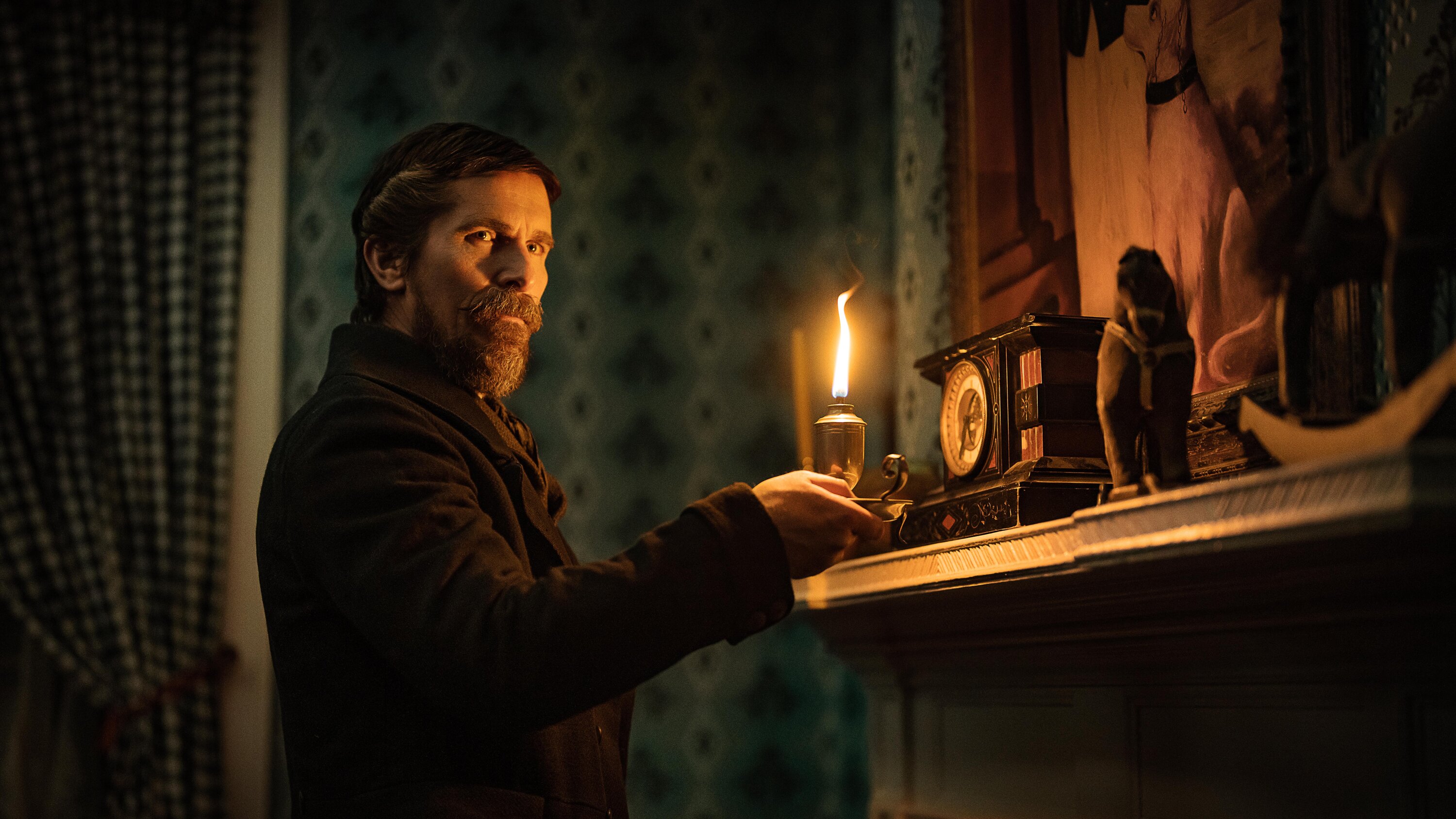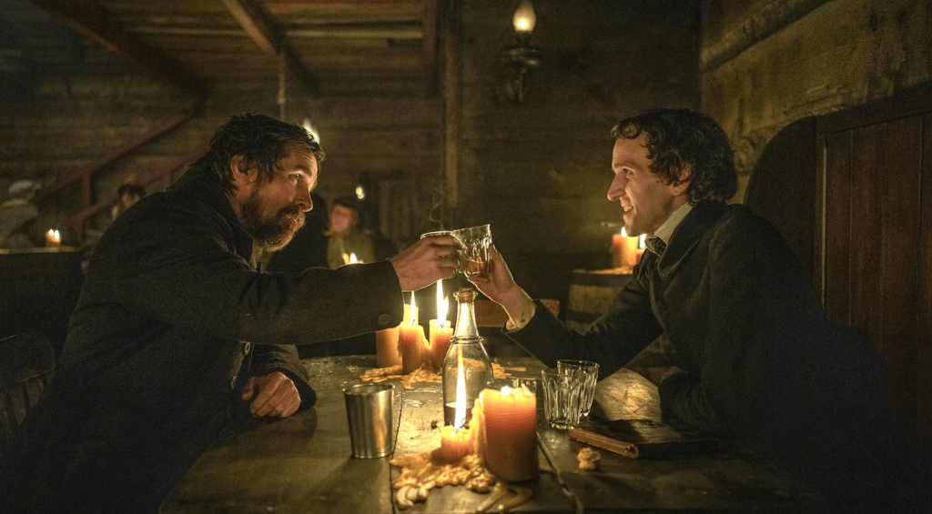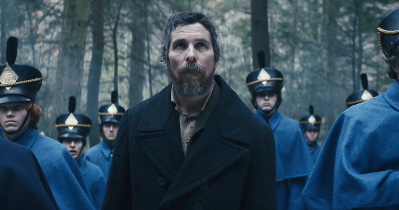 Much of the success of the film also rises from its incredible design work from Stefania Calla (Downsizing, Black Mass) and cinematographer Masanobu Takayanagi (The Grey, Black Mass). Calla is dumping a metric ton of fog into this frozen hellscape, captured beautifully by Takayanagi’s eye for crane work and drone shots. There’s some really excellent greenscreen work from ILM to fully open this snowy New York state area that helps the others build this gorgeous series of visual images that feels real, lived-in, and unforgiving. The harshness of the snow on gravel matches the grey in Bale’s dark hair and beard while Melling is your exemplary emo boy, pale and gaunt and clad in black as often as allowed when not in a powder blue uniform. Kasia Walicka Maimone (Moonrise Kingdom, Ready Player One) is to thank for the costume designs, which feel period appropriate and still allow enough movement for the characters to not feel bound by their costume drama trappings. You can see every dime of this $72m budget onscreen and the team Cooper assembled has really come through.