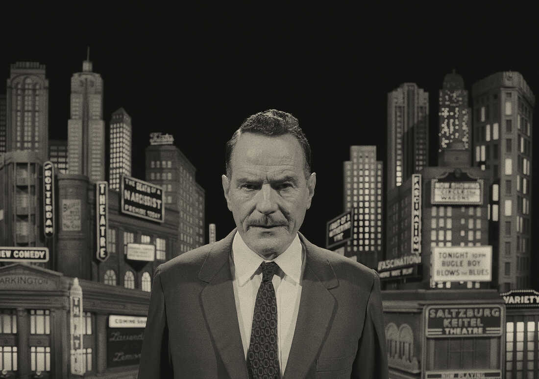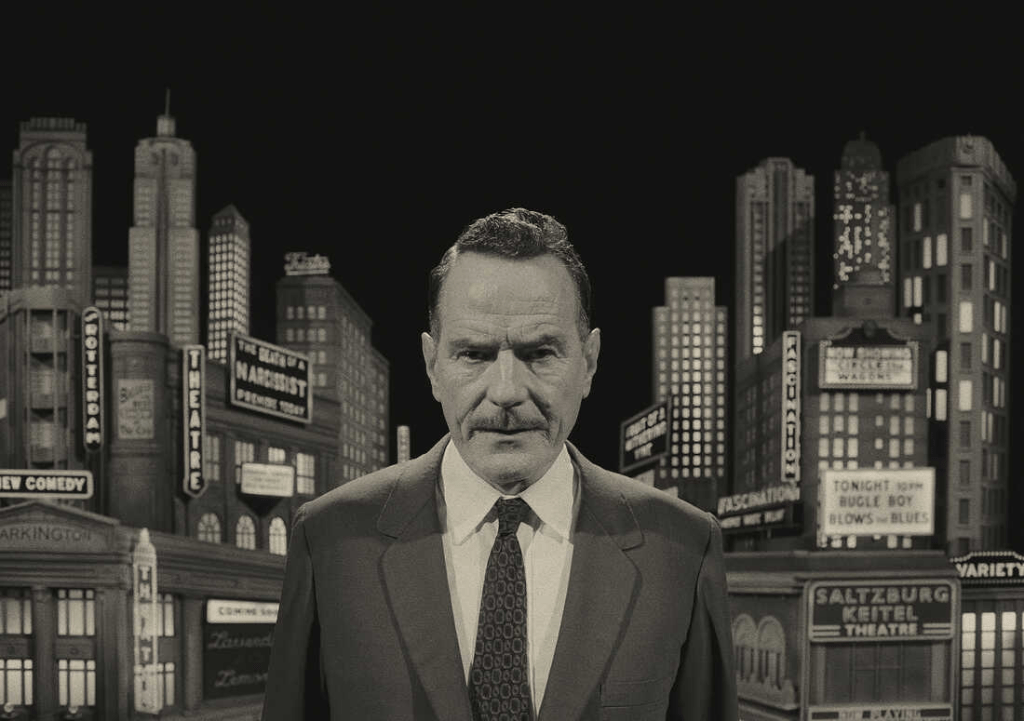 Except this film isn’t a charming little sci-fi story in the desert. It’s a play, written by Conrad Earp (Edward Norton) and directed by Schubert Green (Adrien Brody), and a documentary about the behind-the-scenes interactions that led to the play becoming the colorized film we see. This show, hosted by Bryan Cranston, is shot in academy ratio and utilizes black-and-white photography to separate itself from the colorized full-screen story the play embodies.