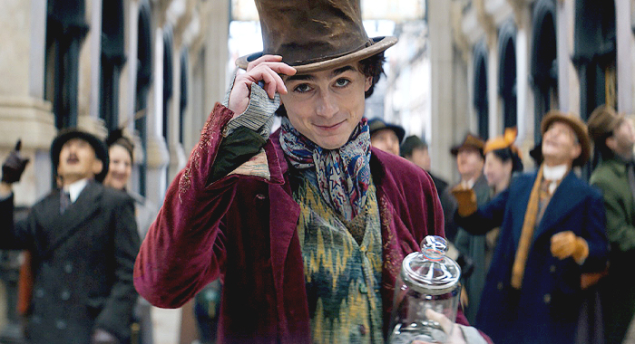 Pure sincerity is often dismissed by modern audiences. The self-conscious, winking Marvel humor and the “what if ________ but hardcore” trends have taken a lot of the glee out of the movies. An oasis in the desert was Paul King’s Paddington, a sweet movie about a sweet bear and his newfound family. He followed it up with Paddington 2, one of the greatest family films ever made, and from there he was contracted to write and direct a new adaptation of Roald Dahl’s Charlie and the Chocolate Factory. I adore Gene Wilder’s performance and I have to admit that I have some measure of fondness for Tim Burton’s remake. The character of Willy Wonka is special to me after adoring Dahl’s work as a kid and I was trepidatious about an origin story film.