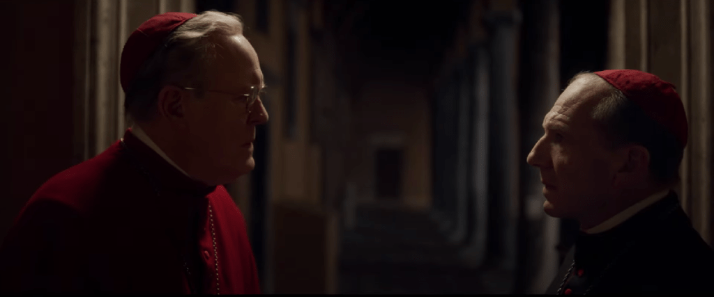 Lining up a wall of character actors is often a good way to lend credence to a film, relieving it of a ton of inherent silliness. Conclave makes no bones about the pettiness of men in power, vying for position and moving chess pieces in a world where piety and ego are kindred. Hell, the cardinals don’t even let the body cool before they begin to maneuver into position. And poor Joseph Cardinal Lawrence (Ralph Fiennes), stuck in the middle as he tries to coordinate them in their sequestered hideaway. The shifting, the tension, the clashing politics, and the ever-present reminder that these supposed conduits to God are mere humans with their own agendas make for one of the better popcorn movies we’ve had in a while (no, I did not watch this while eating popcorn out of the Venom bucket).
